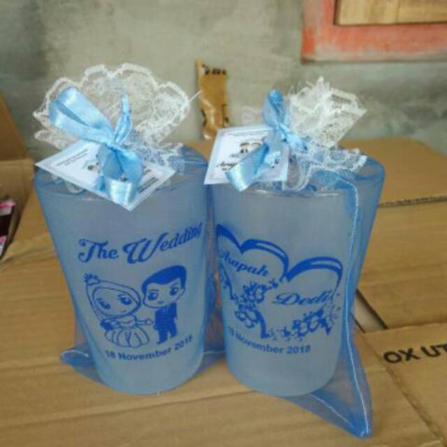 Souvenir gelas sablon kemasan kain tile(isi 100pc+ongkir) | Shopee …
