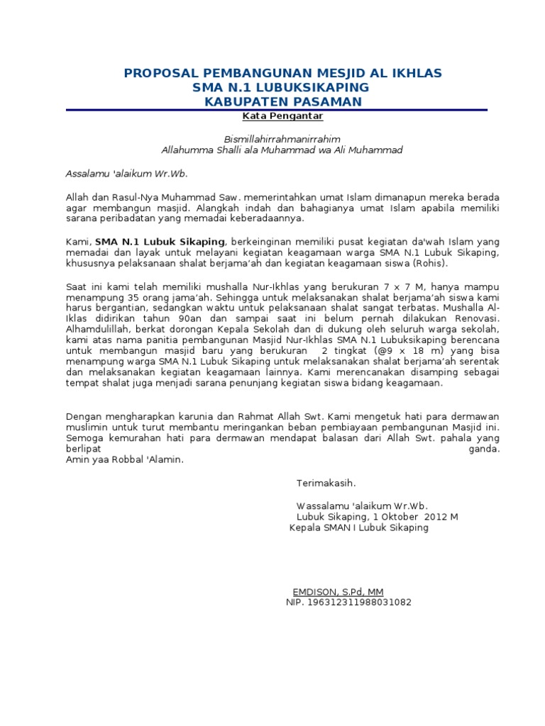 DOC) PROPOSAL BANTUAN PEMBANGUNAN MASJID AL-INSAN | M. Ansyar Bora - Academia.edu