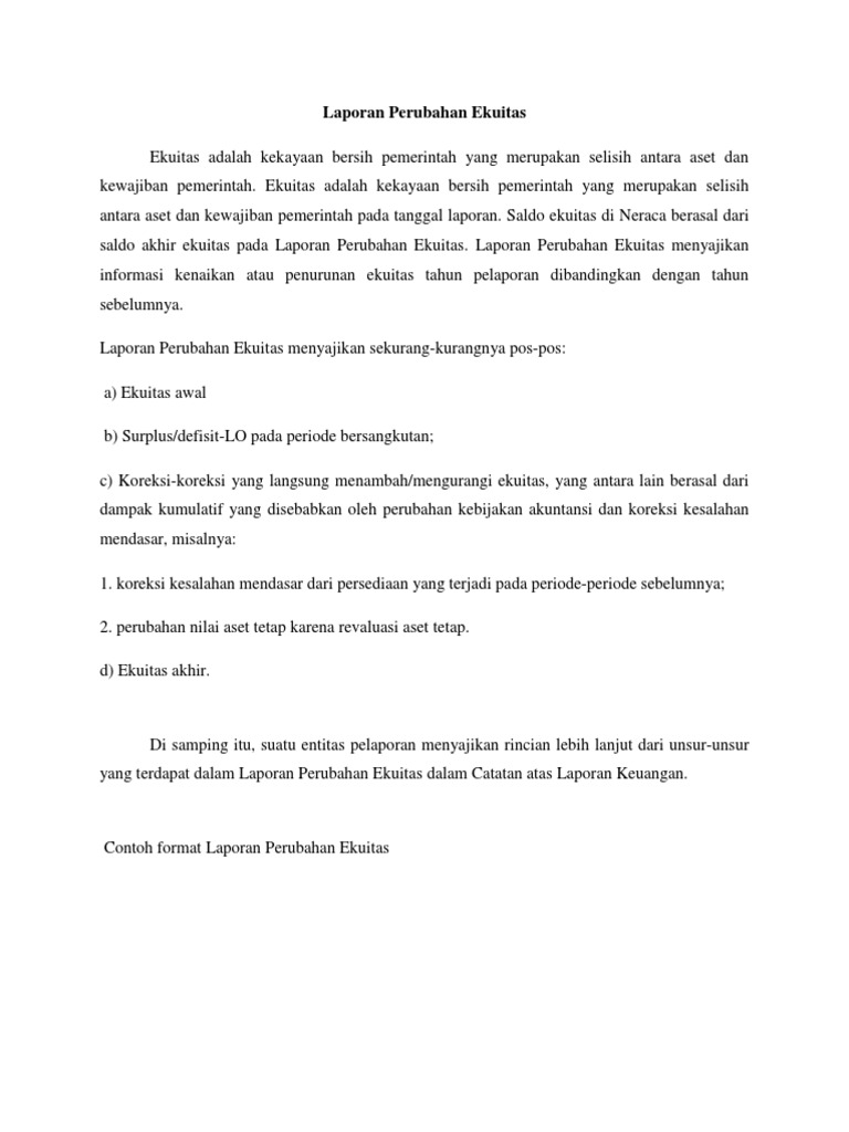 6 Contoh Format Laporan Perubahan Ekuitas Pemerintah Pusat - [DOCX …