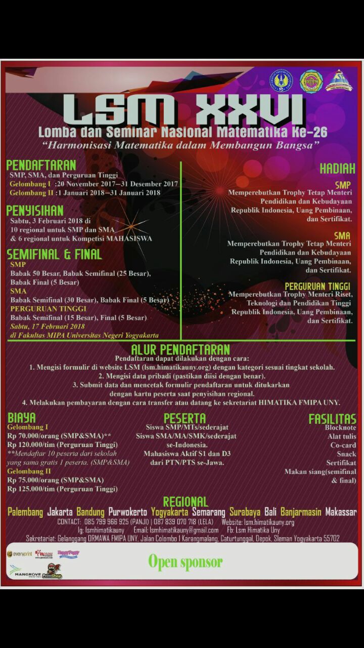 Lomba dan Seminar Matematika (LSM) XXVI Untuk SMP SMA Mahasiswa …
