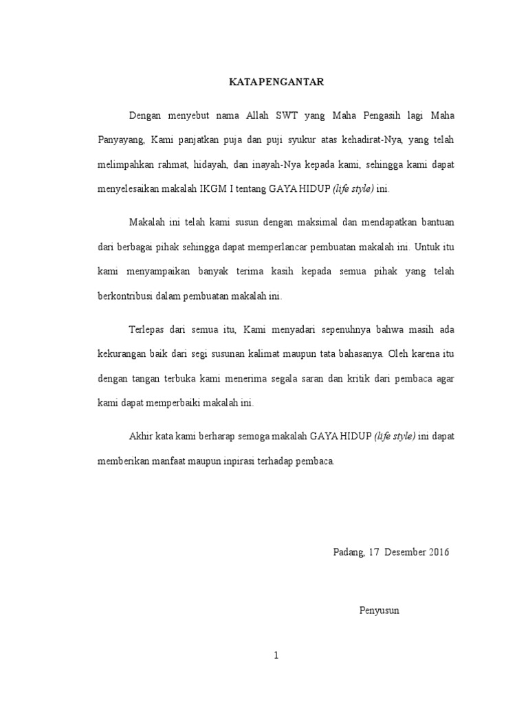Makalah Tentang Gaya Hidup: Bab I Pendahuluan
