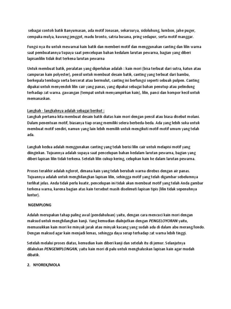 Memberi Lilin Malam Pada Kain Yang Sesuai Pola Disebut - Coba Sebutkan