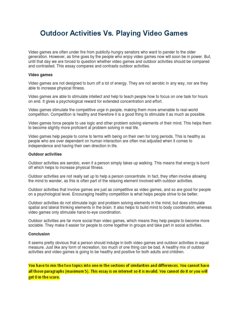 Essay outdoor activities and playing video games