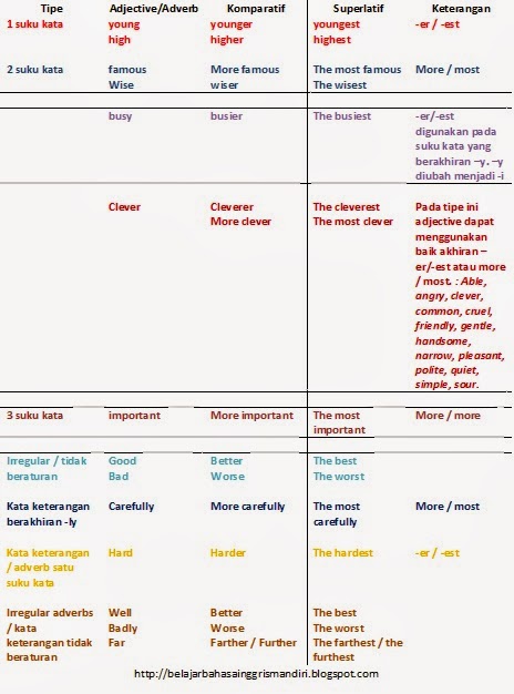Pelajaran 100 : Tabel perubahan adverb / adjective pada komparatif …