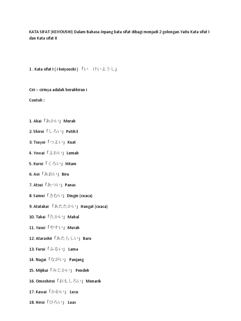PDF) Analisis Kontrastif Kata Sifat (Keiyoushi) Bahasa Jepang dan Bahasa Indonesia Ditinjau Secara Gramatikal Serta Pengajarannya