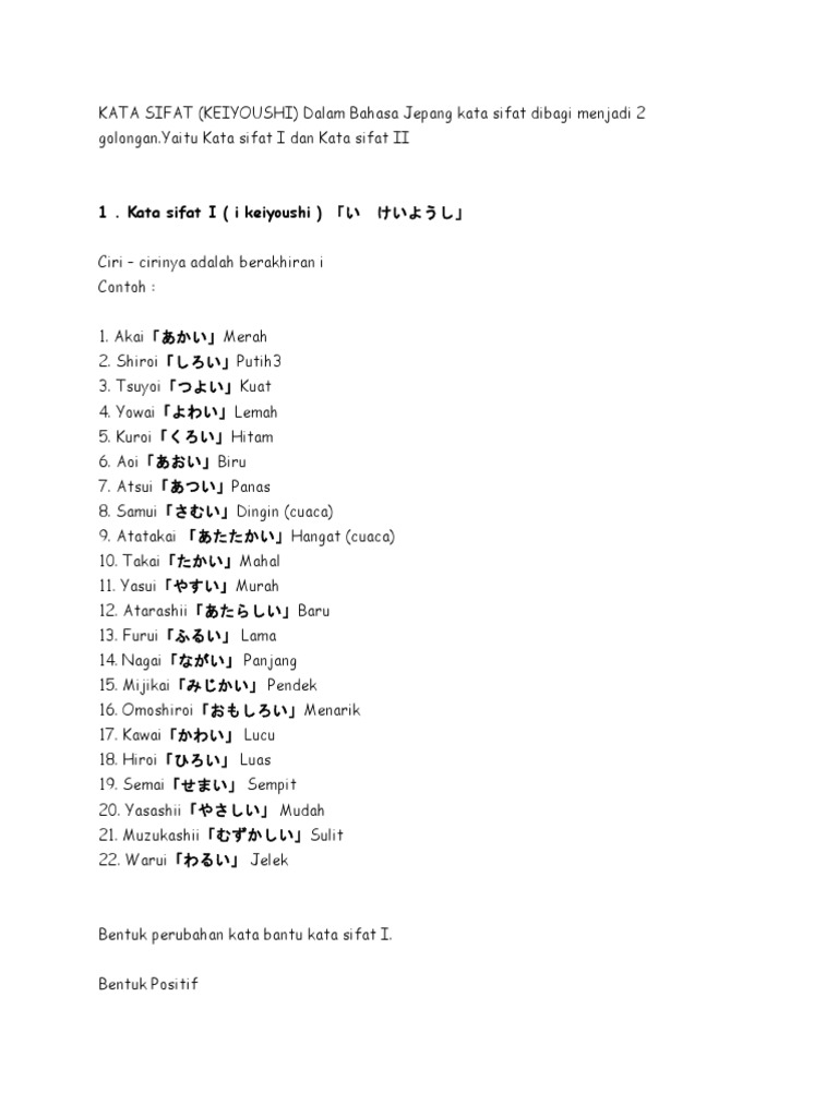 Bentuk Kata Sifat Dalam Bahasa Jepang - Berbagi Bentuk Penting