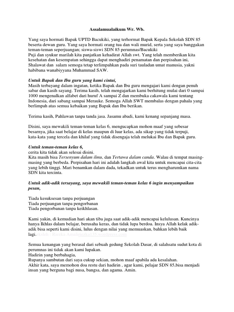 Teks Pidato Perpisahan Kelas 6 Singkat Terkait Teks - Cute766