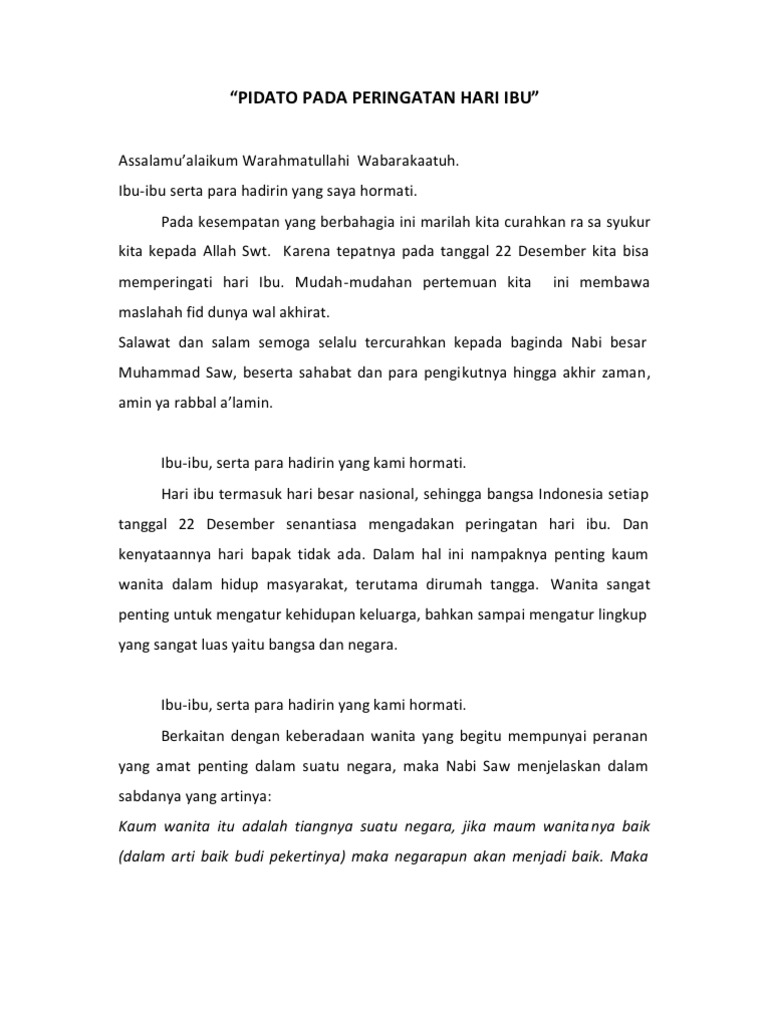 DOC) Contoh Naskah Pidato Memperingati Hari Ibu | Wahyu Widodo - Academia.edu