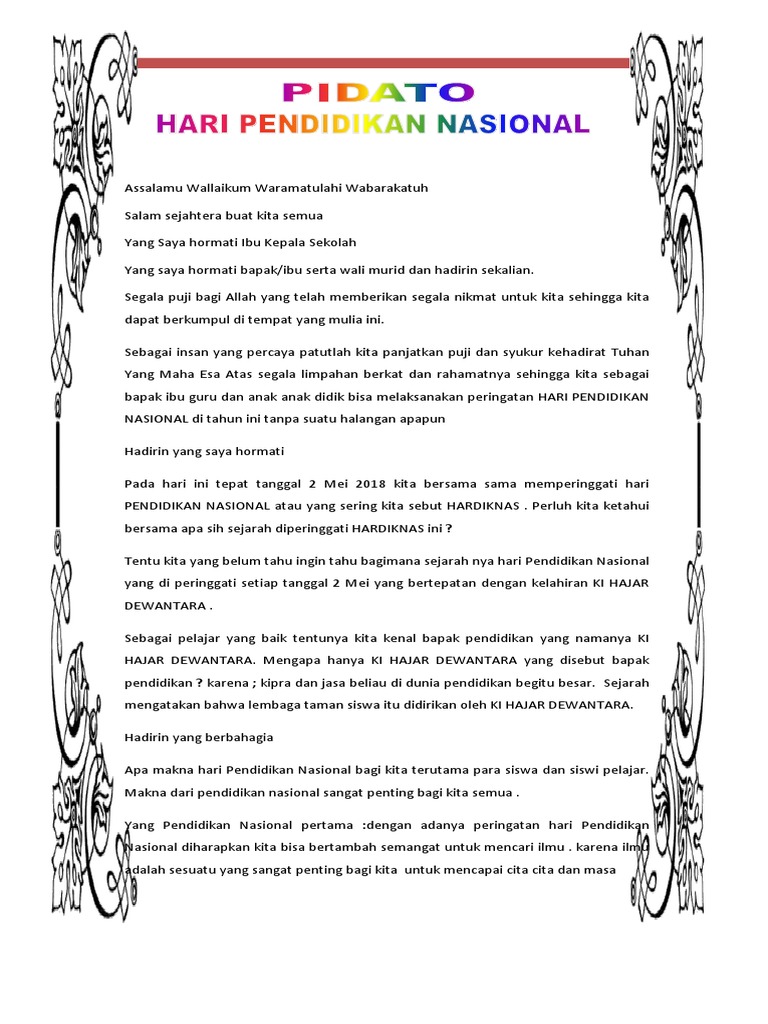 Pidato Hari Pendidikan Nasional 2 Mei 2018 - Bospedia