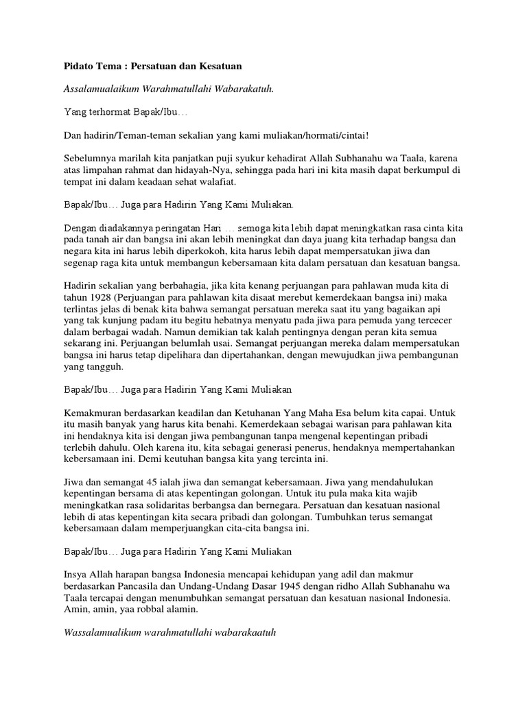 Contoh Naskah Pidato Tema Kebersamaan Dan Persatuan - Pidato | speech