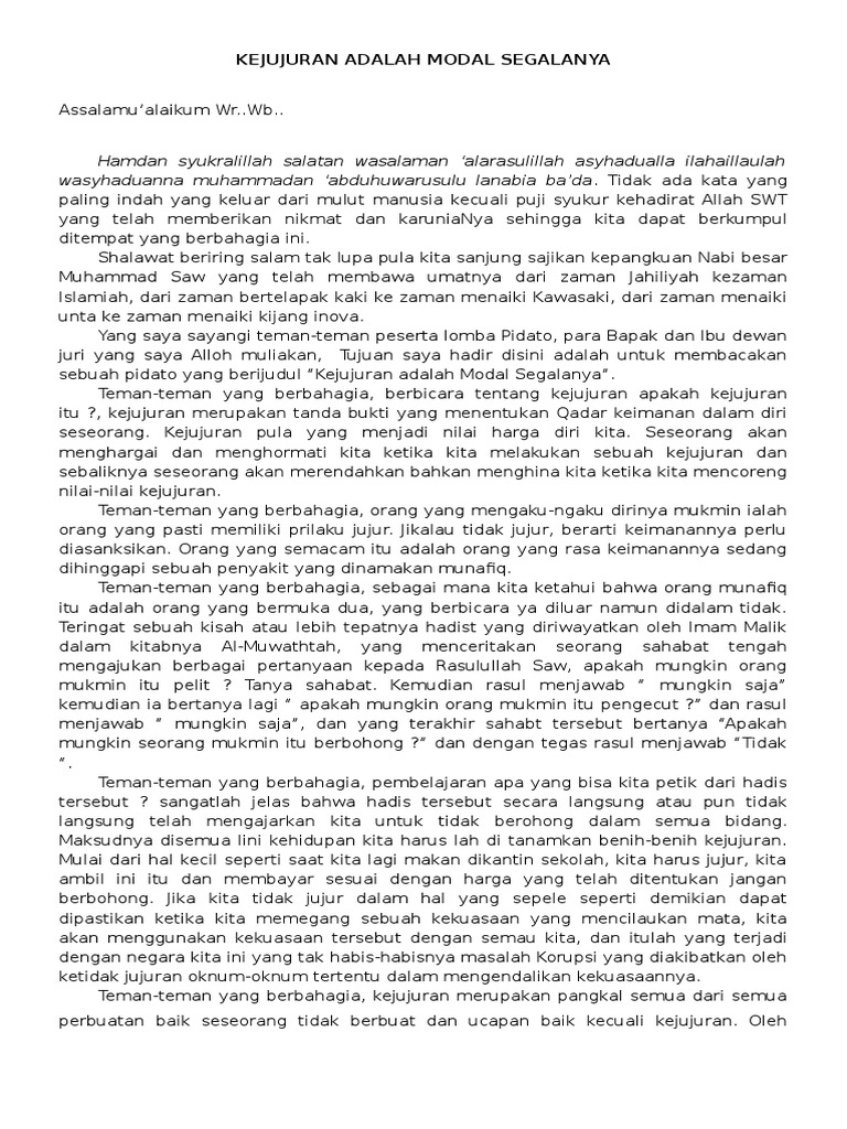 Contoh Pidato Agama Tentang Kejujuran | Zona ilmu 1