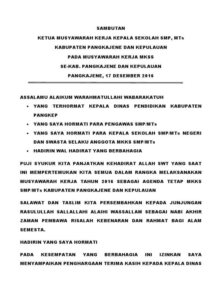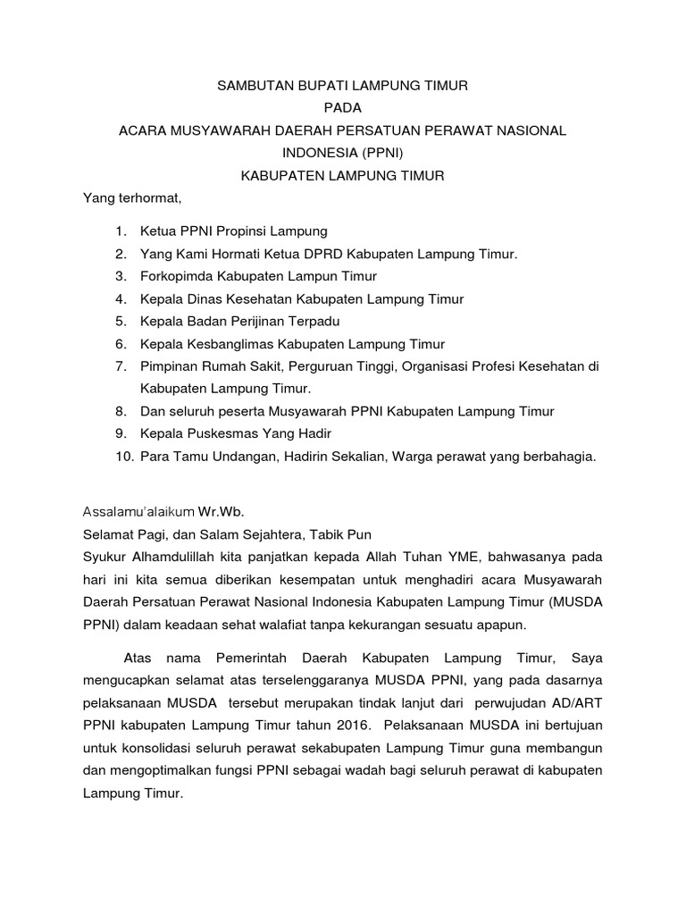 Contoh Pidato Sambutan Musrenbang Kabupaten - Kata Sambutan …