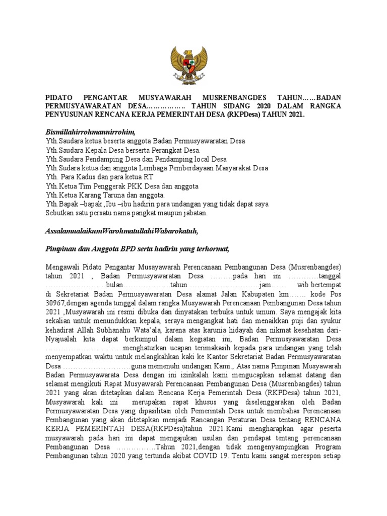 Pidato Sambutan Musyawarah Perencanaan Pembangunan Desa …
