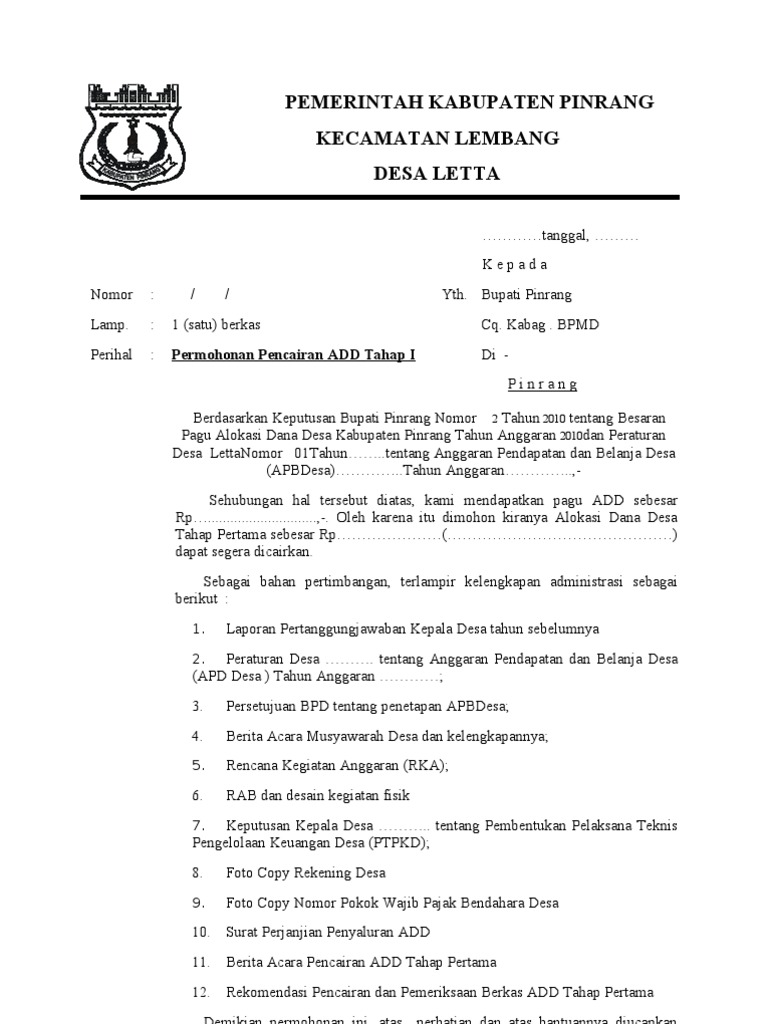 Format Terbaru Surat Permohonan Pencairan Dana Desa | FORMAT ADMINISTRASI DESA