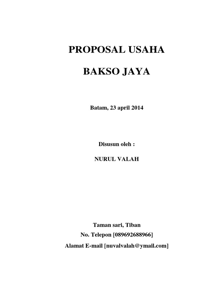 DOC) Contoh Proposal Usaha Makanan Bakso | RaniApriyani Hamidah - Academia.edu