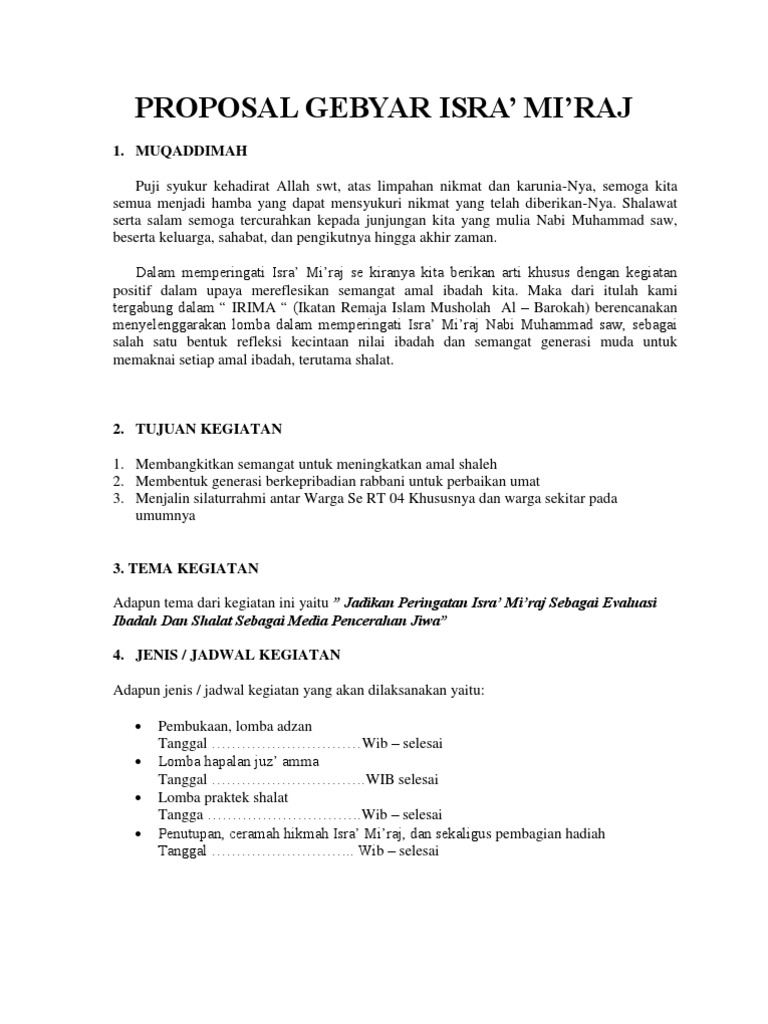 DOC) PROPOSAL KEGIATAN ISRA' MI’RAJ NABI MUHAMMAD SAW | Nurleni Firman - Academia.edu