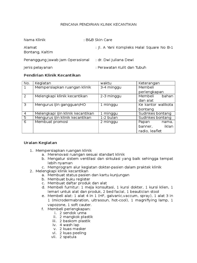Rencana Pendirian Klinik Kecantikan