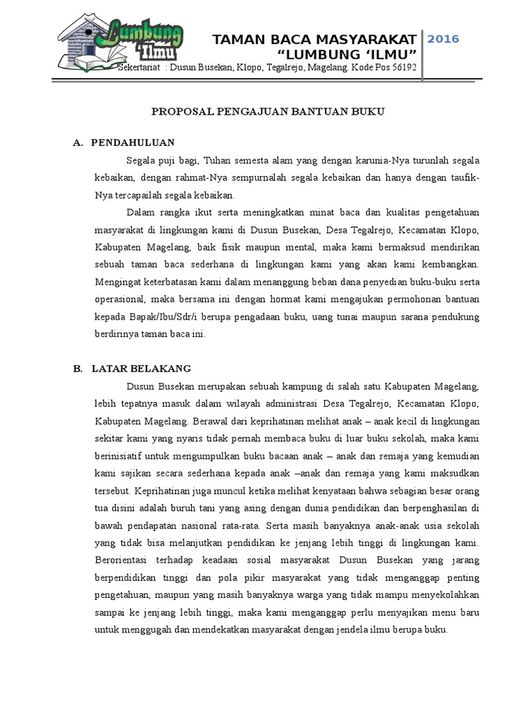 DOC) PROPOSAL PERMOHONAN SUMBANGAN BUKU | Hendra Bayu - Academia.edu