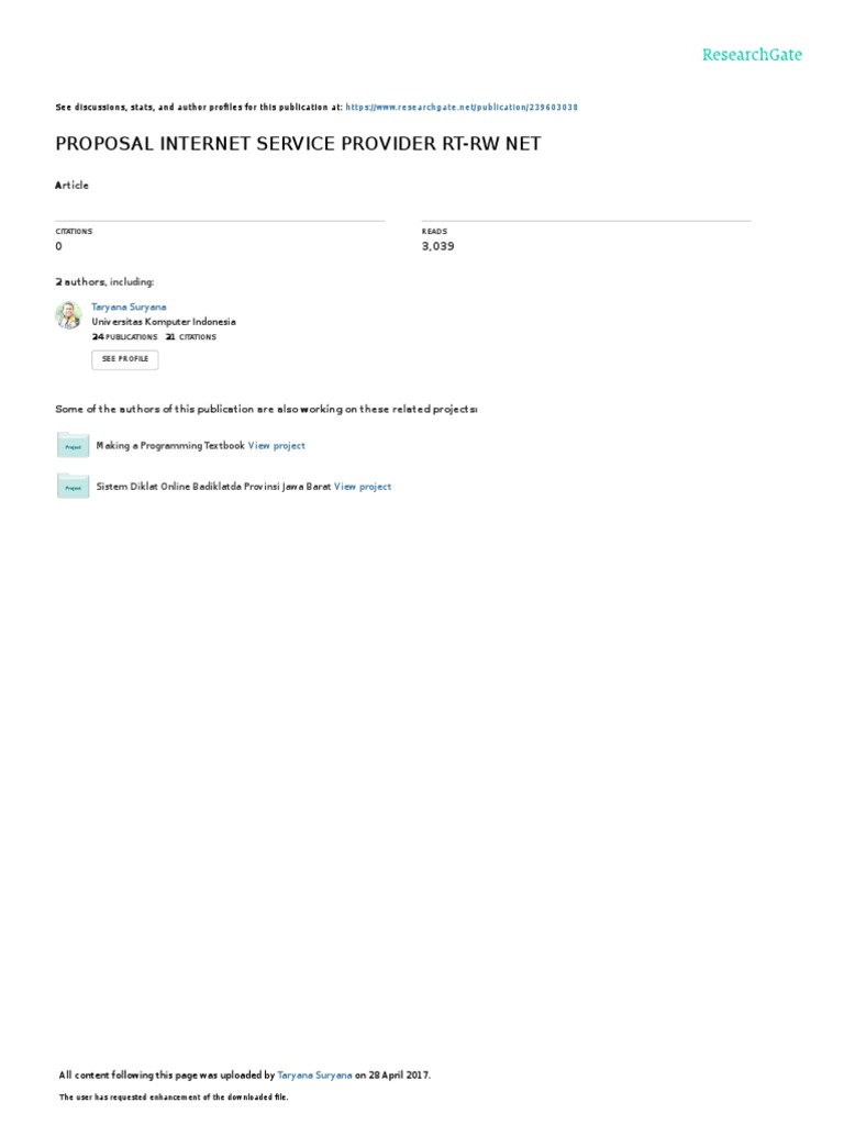 PROPOSAL INTERNET SERVICE PROVIDER RT-RW NET. Tugas Cyberpreneur - PDF Free Download