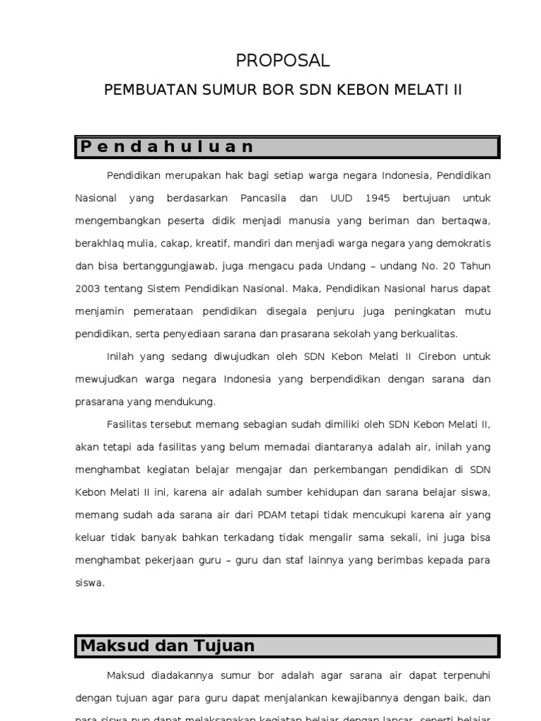 Contoh Proposal Sumur Bor Untuk Sekolah - Berbagi Contoh Proposal