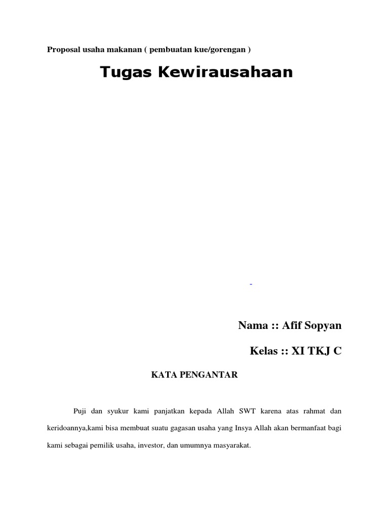 DOC) Contoh Proposal usaha makanan | Rohmat Tamvan - Academia.edu