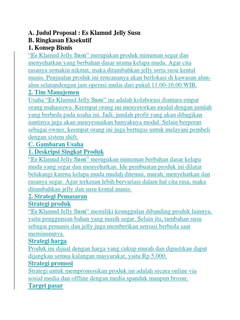 Proposal Usaha Es Klamud Jelly Susu