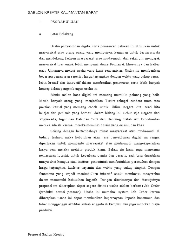 Contoh Proposal Usaha Sablon Dan Percetakan - [DOCX Document]
