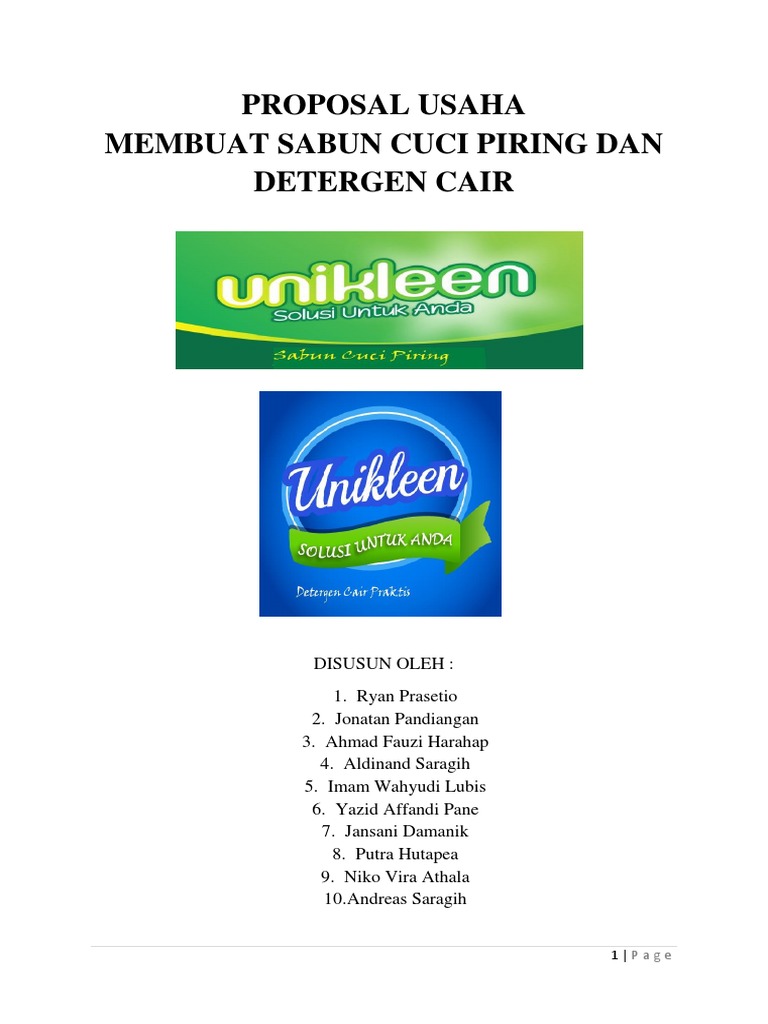 PROPOSAL USAHA MEMBUAT SABUN CUCI PIRING DAN DETERGEN CAIR