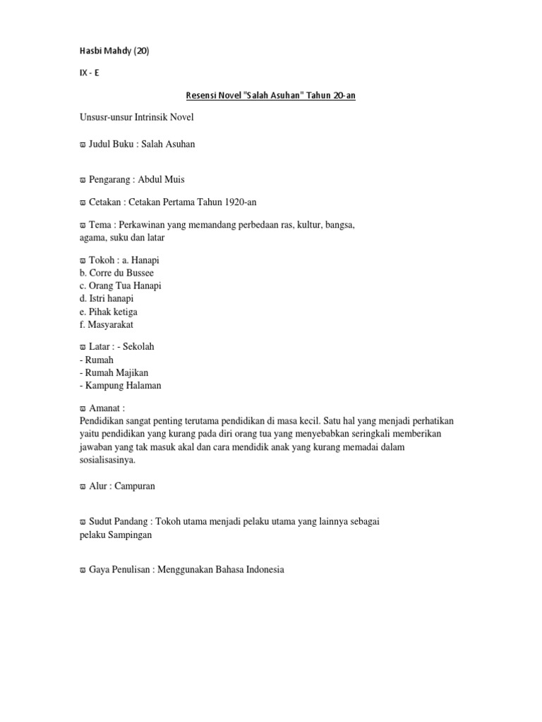 DOC) Analisis Unsur Intrinsik dan Ekstrinsik Novel Salah Asuhan (Abdoel Moeis | dini a - Academia.edu
