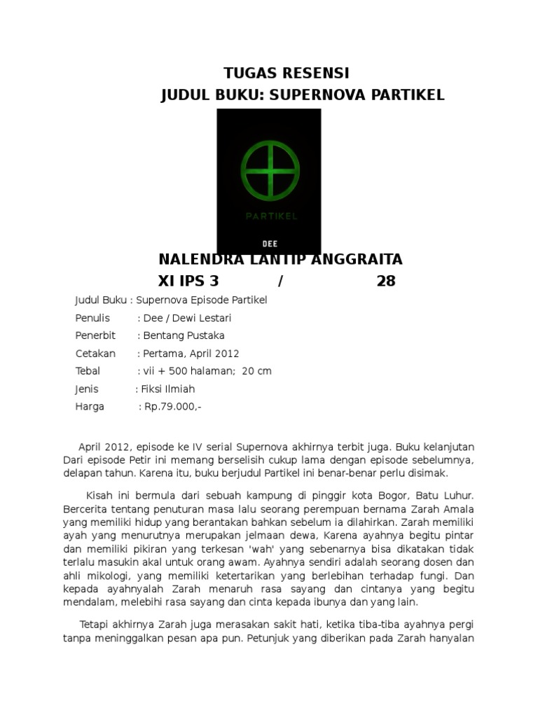 Judul Buku: Supernova Partikel: Tugas Resensi