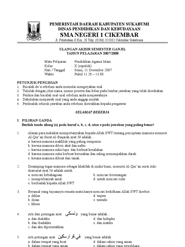 Contoh Soal Agama Islam Kelas Xi Semester 2 Beserta Jawaban - Guru Ilmu Sosial