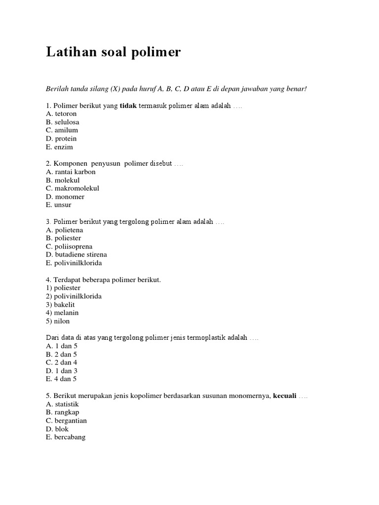 Contoh Soal Polimer : 30 Contoh Soal Dan Pembahasan Mengenai …