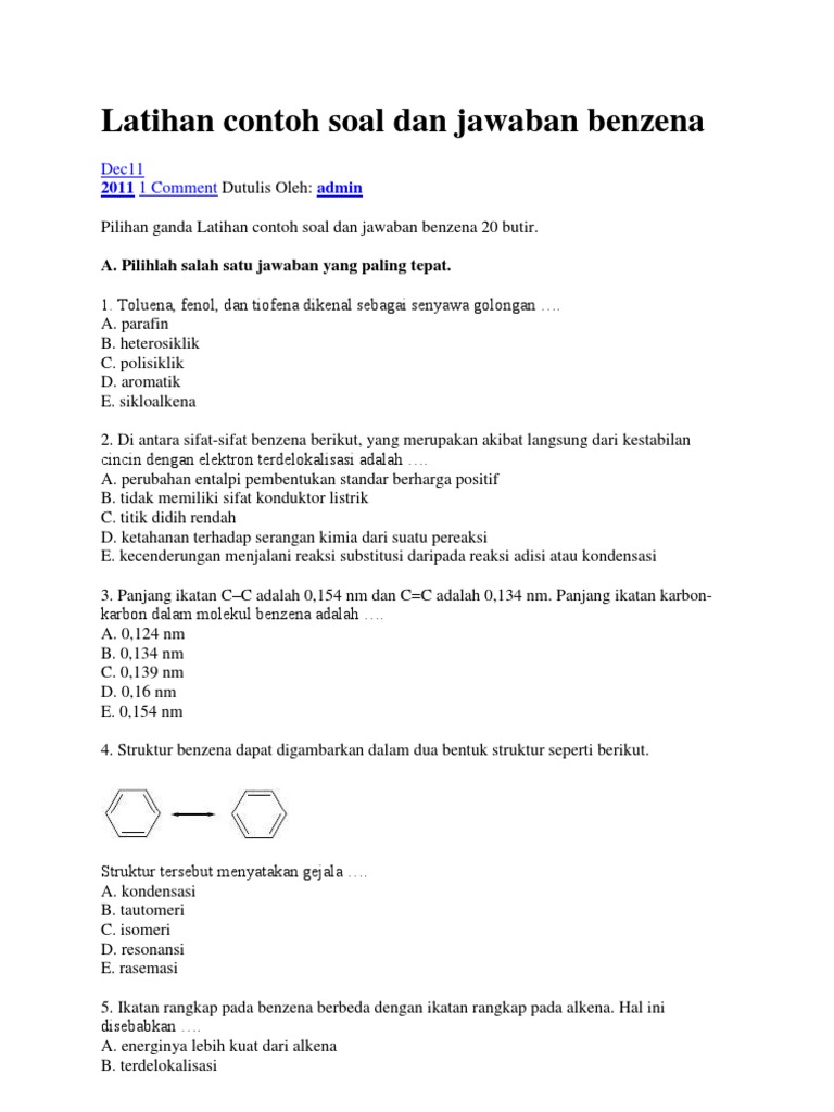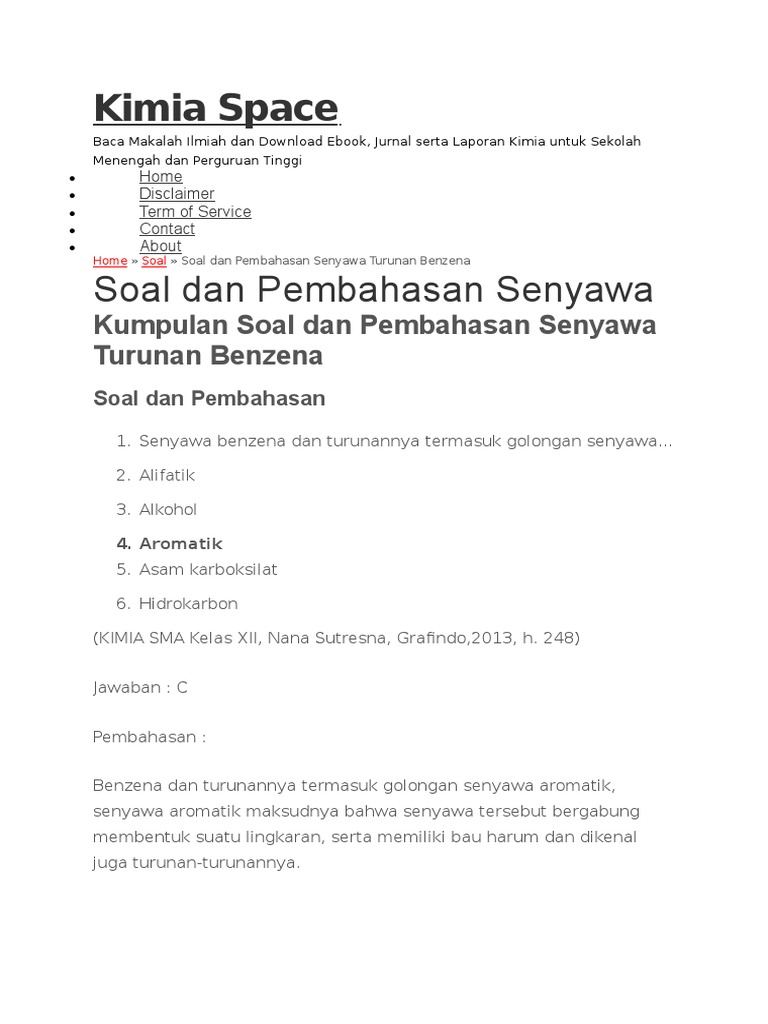 Contoh Soal Dan Pembahasan Benzena Dan Turunannya - Contoh Soal …