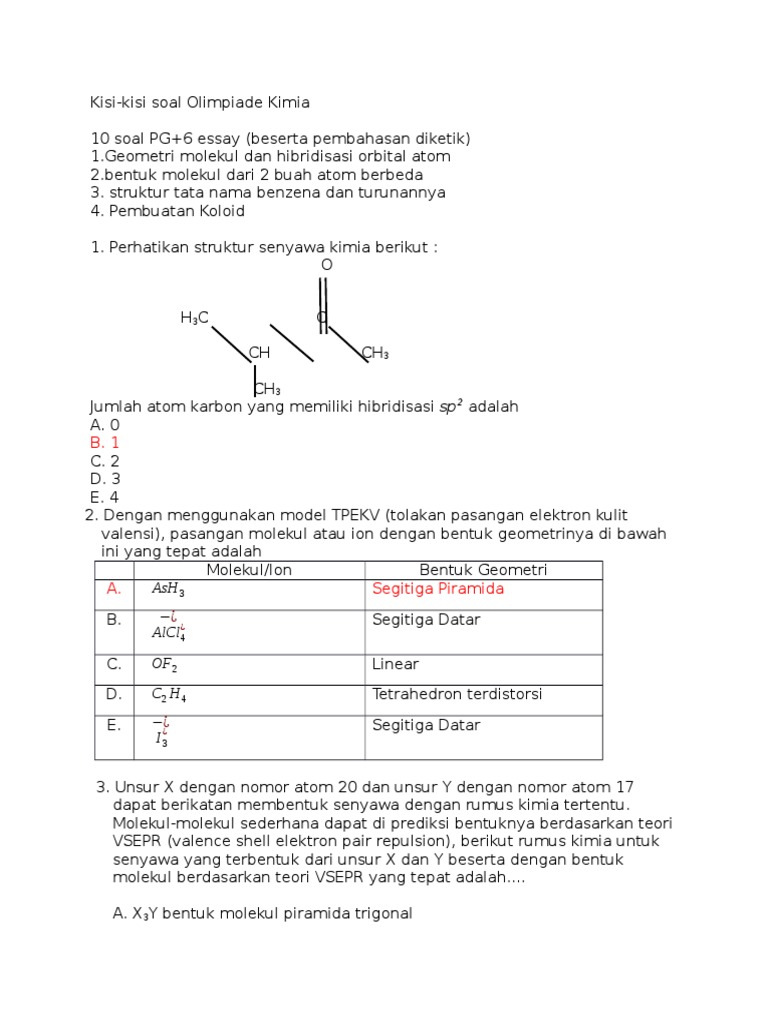 Pembahasan Soal Olimipiade Kimia Siswa SCE Sesumatera Bagian Utara …