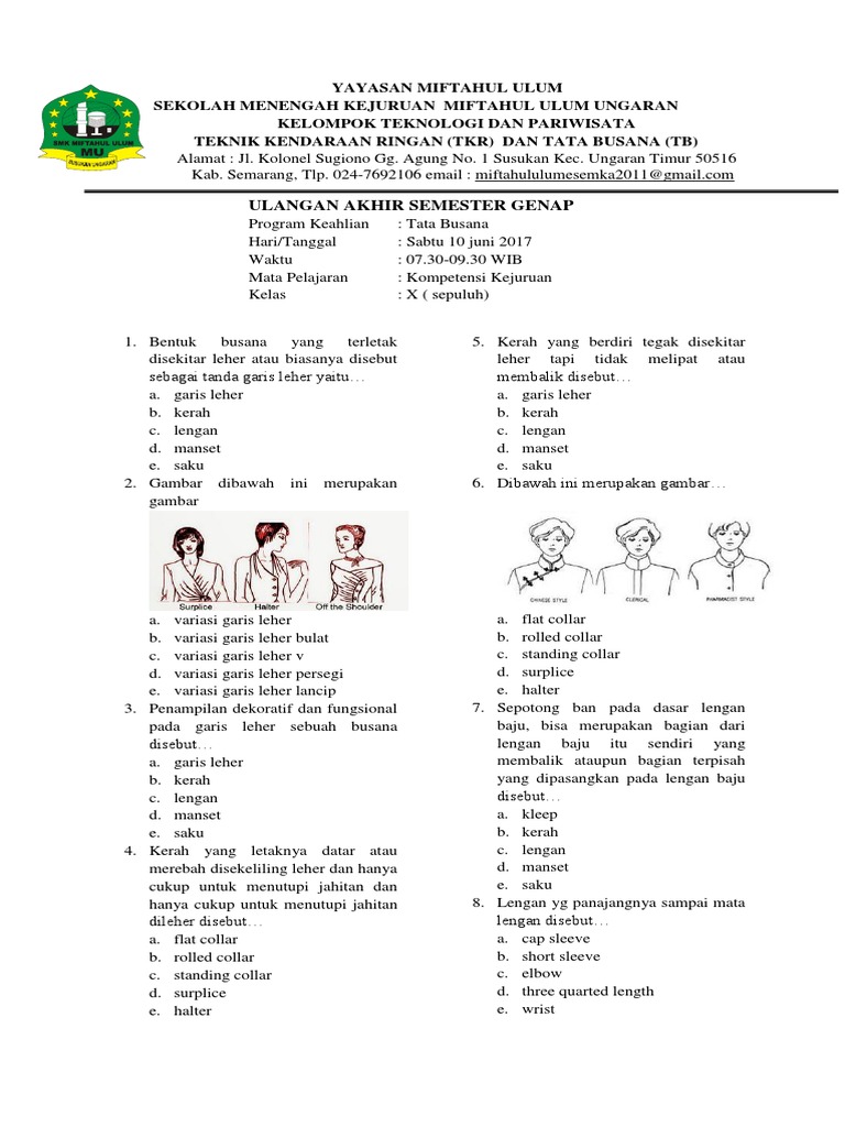 Soal dan Kunci Jawaban USBN Tata Busana C2 - JURNAL ARTEFAK