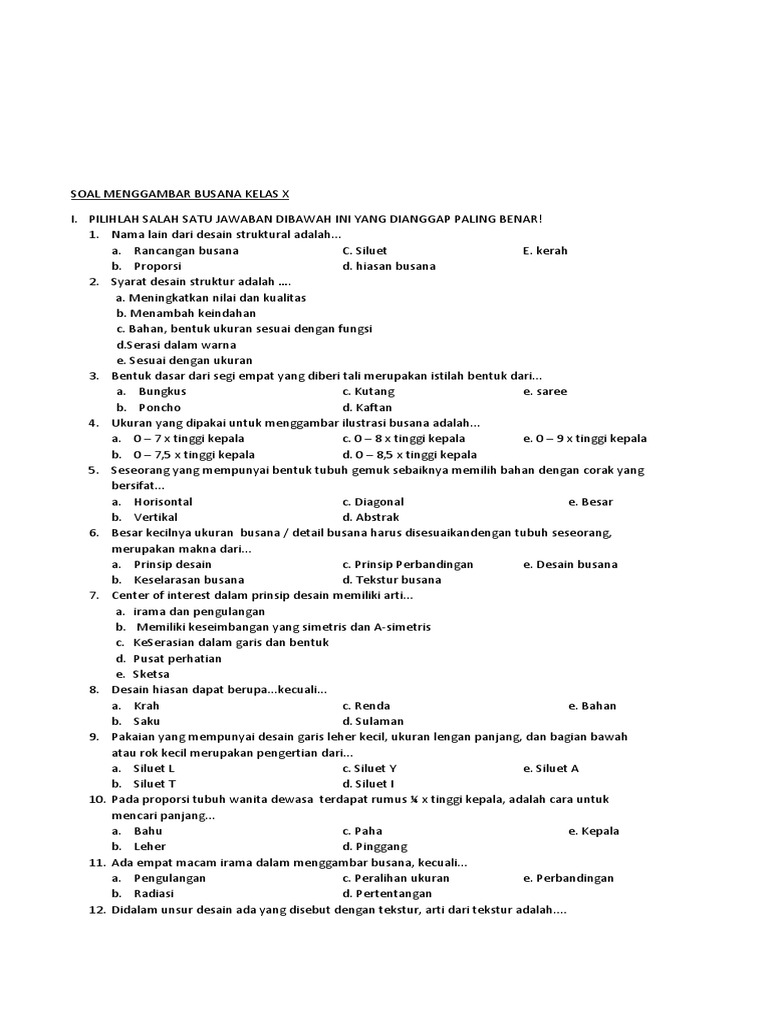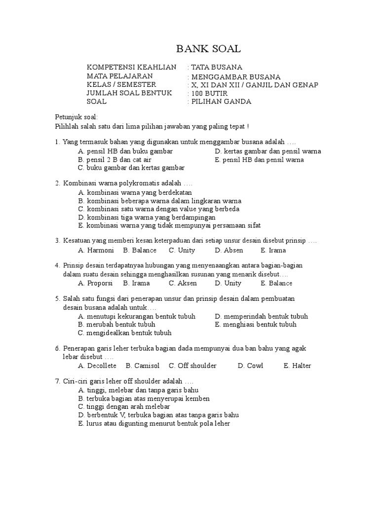 Contoh Soal Desain Busana Kelas 10 Beserta Jawabannya - Rismax