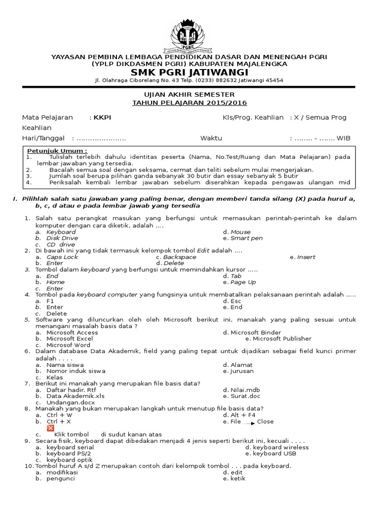 Contoh Soal Kkpi Pilihan Ganda Kunci Jawabannya - Kanal Jabar