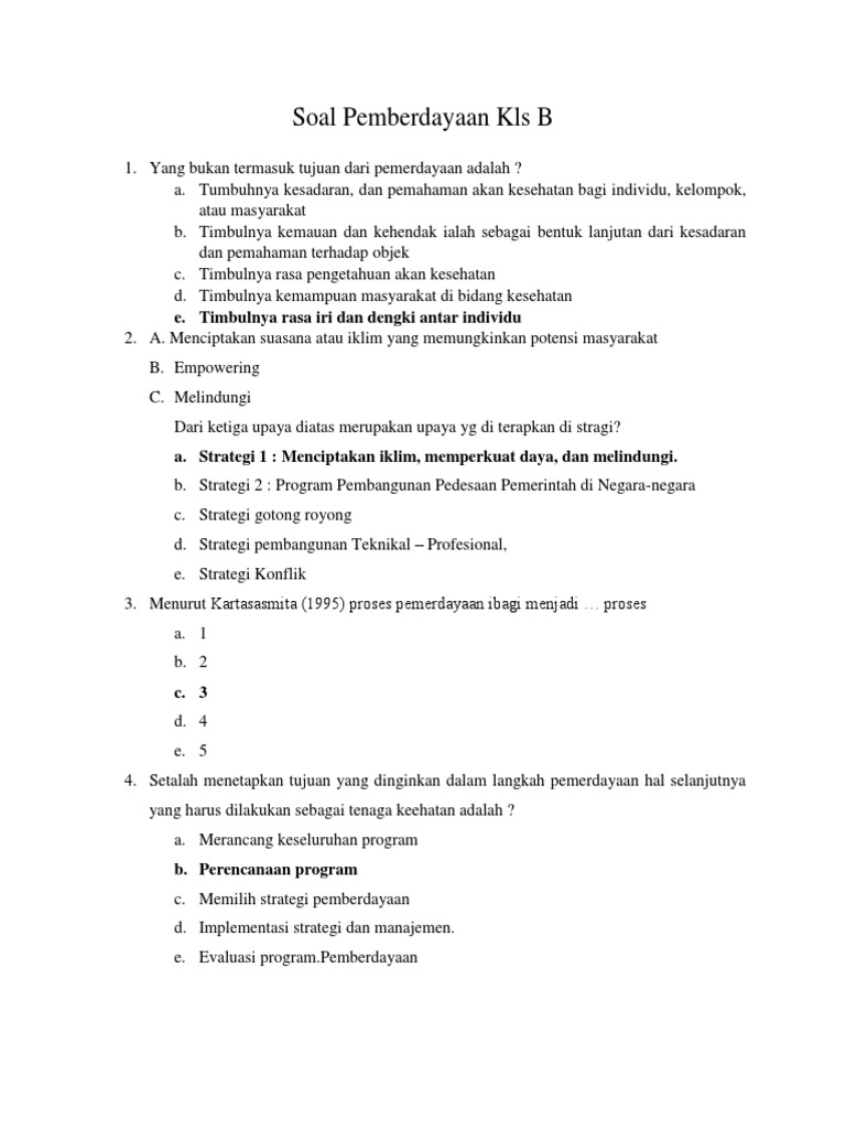 Kesehatan Masyarakat: Soal UAS Pemberdayaan Masyarakat.