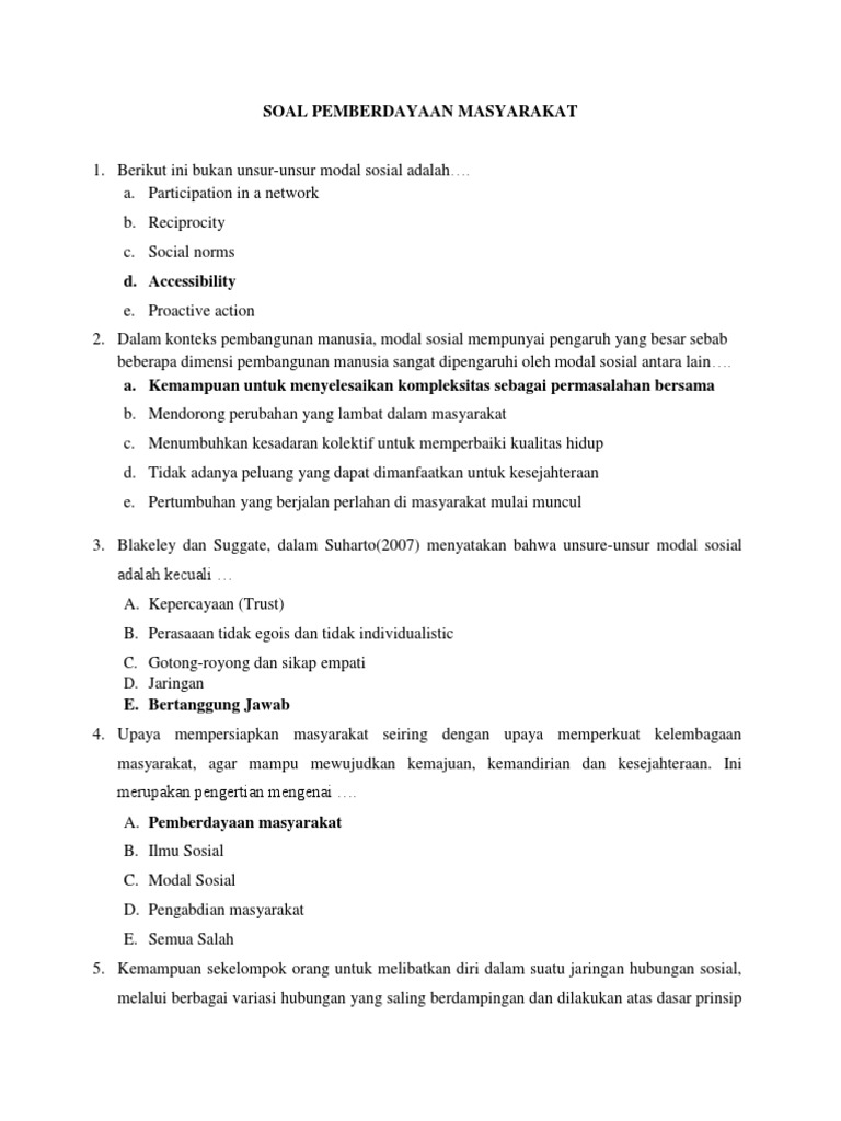 Soal Ulangan Materi Pemberdayaan Komunitas - MGMP SOSIOLOGI JATENG