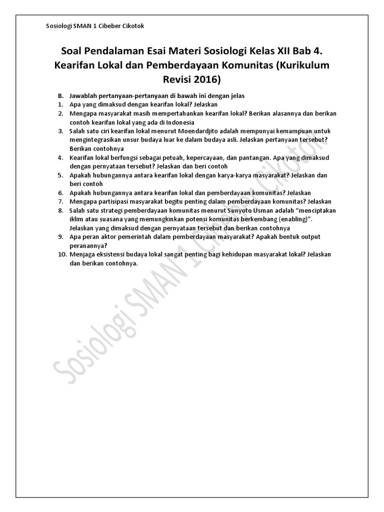 Soal Pendalaman Esai Materi Sosiologi Kelas XII Bab 4. Kearifan …