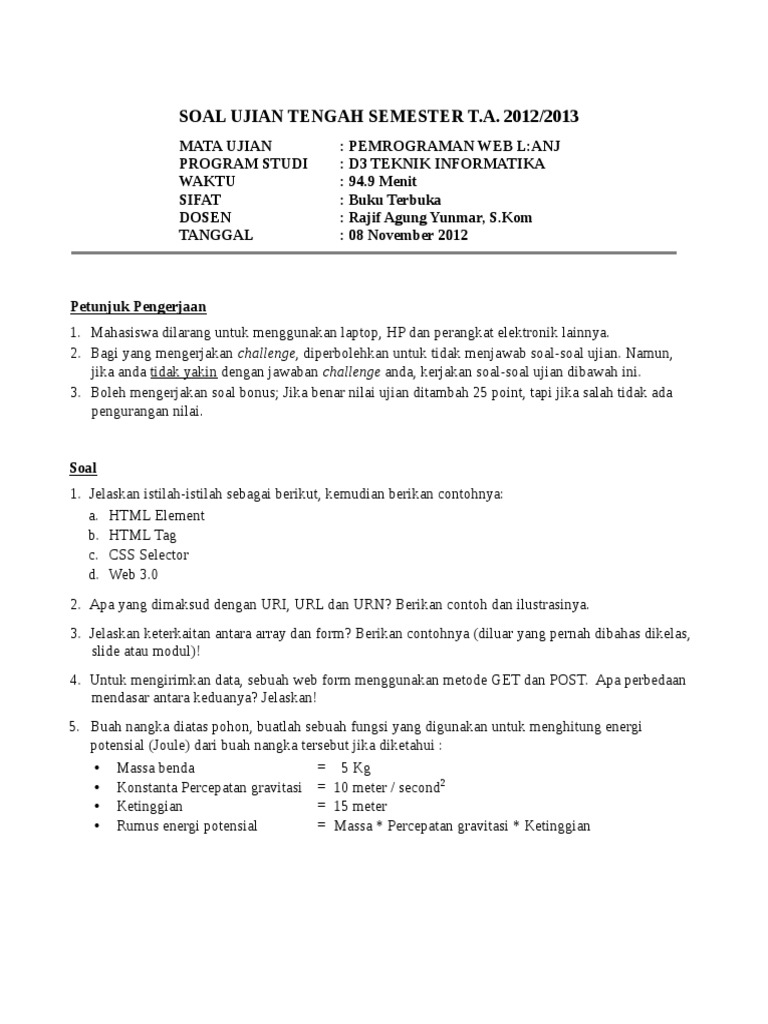 DOC) Soal website | Amar Gomat - Academia.edu