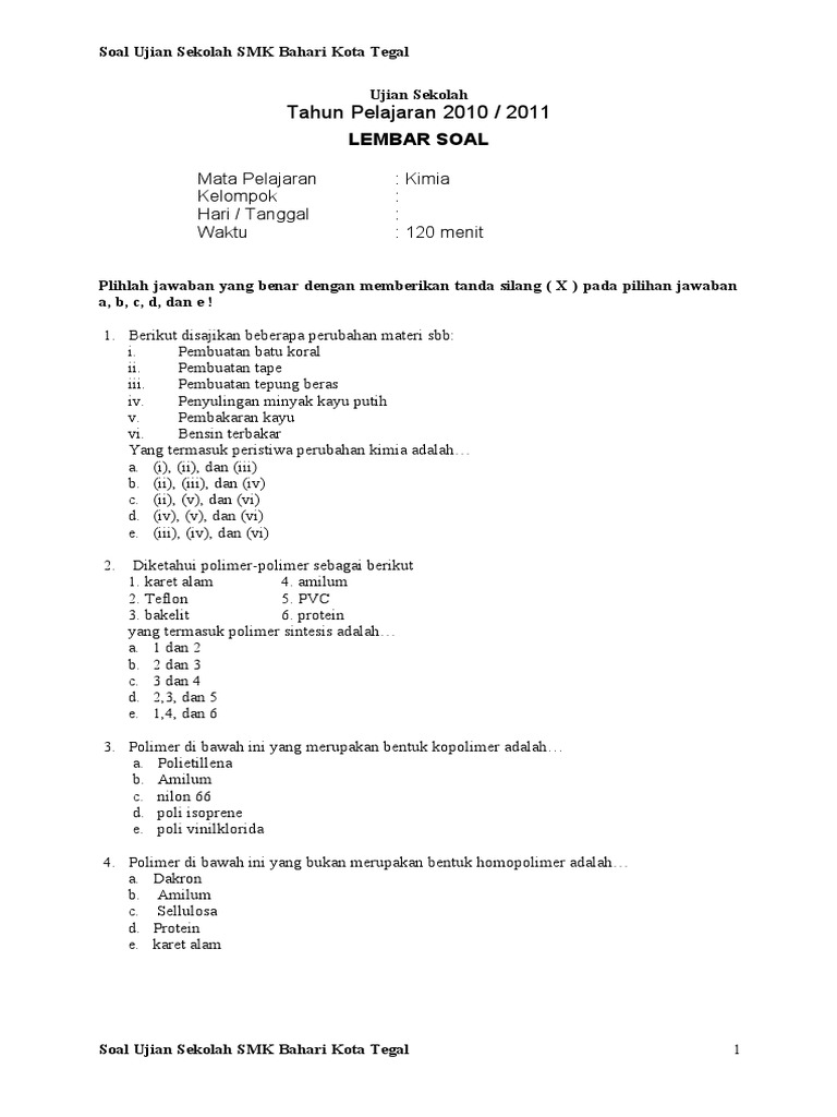 DOC) Soal Pilihan Ganda Kimia Kelas X Semester 1 & 2 | Irfan Kamal Firdaus - Academia.edu