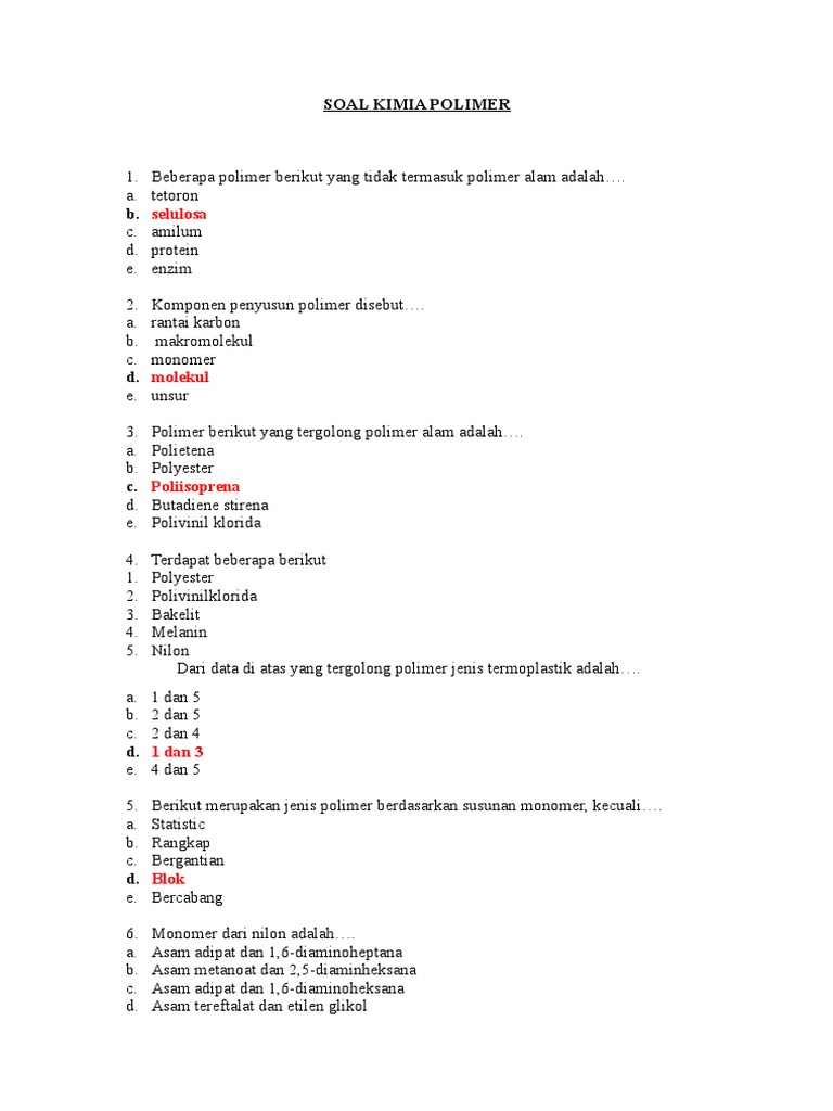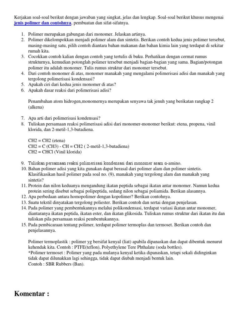 Contoh Soal Essay Polimer Dan Jawabannya - Contoh Soal Terbaru