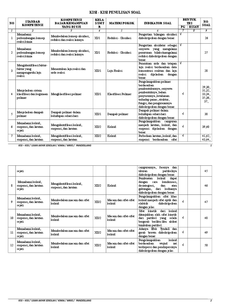 Kisi Kisi Penulisan Soal Evaluasi Kimia