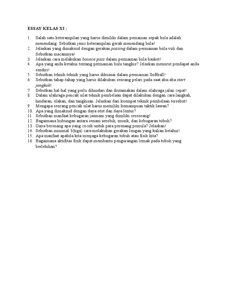 Lengkap - 30+ Contoh Soal Essay Penjaskes Kelas 12 SMA/MA dan …
