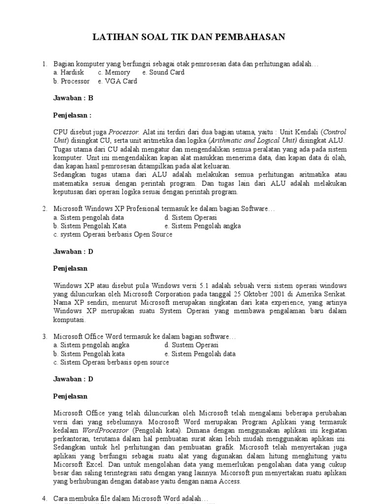 Soal Dan Jawaban Tik Tentang Microsoft Word - Bali Teacher
