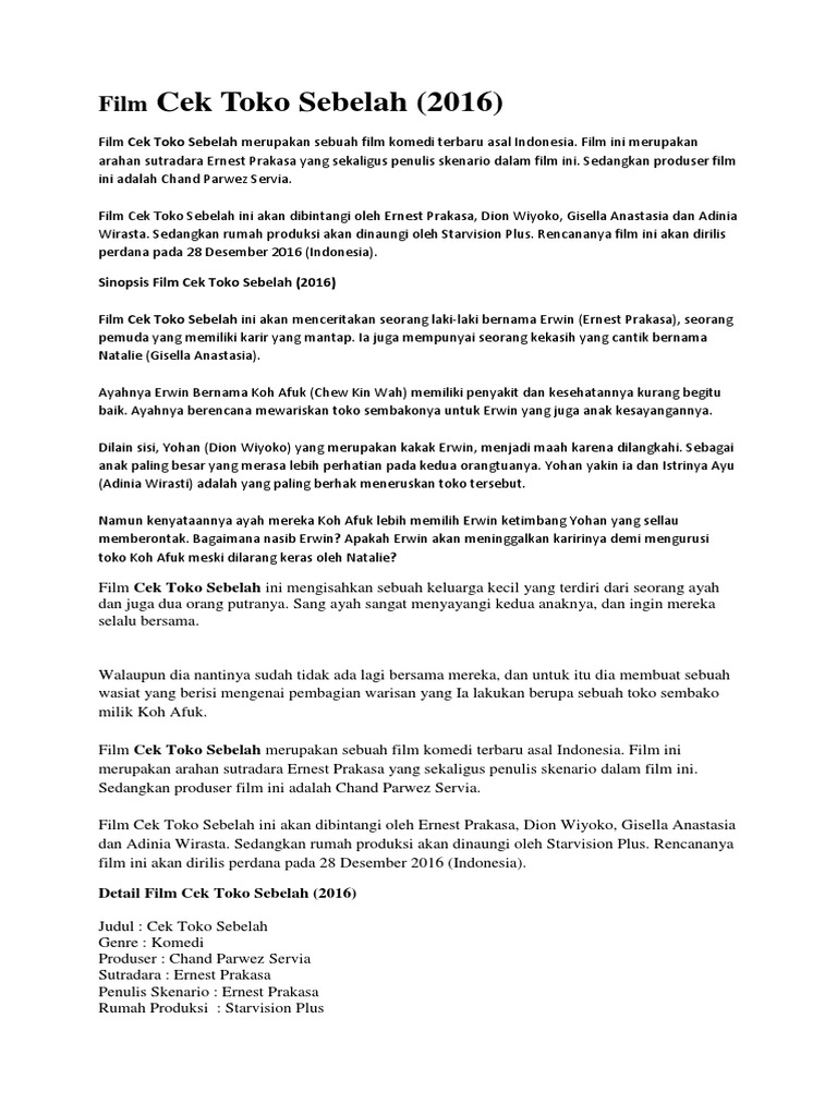 Teks Ulasan Film Cek Toko Sebelah Beserta Strukturnya - Berbagi Struktur