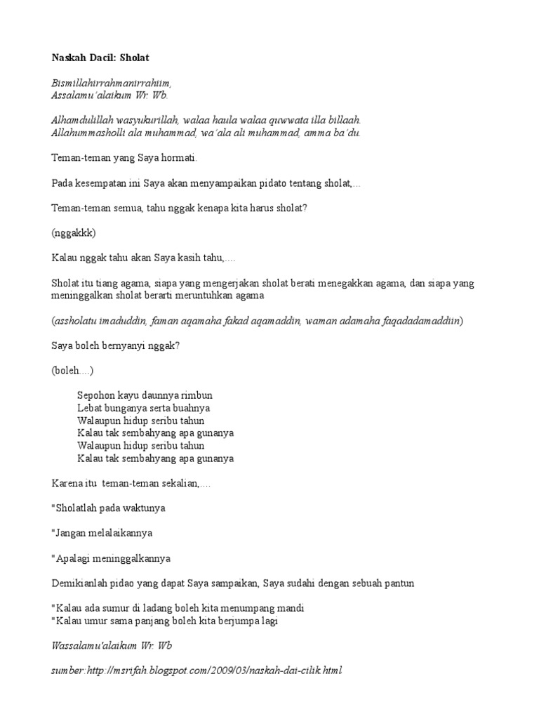 Contoh Teks Naskah Ceramah Anak SD Pentingnya Shalat bunyamincibalonggarut.blogspot.com