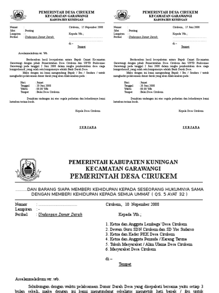 Surat Pemberitahuan Acara Dan Undangan DONOR DARAH