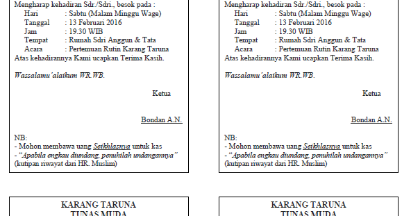 Contoh Undangan Pertemuan Rutin Karang Taruna ~ Karang Taruna Tampingan